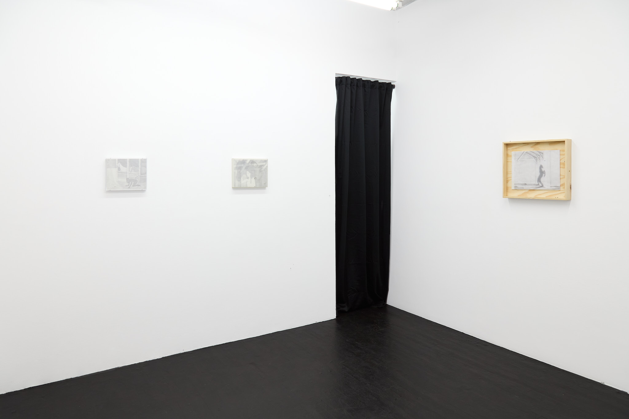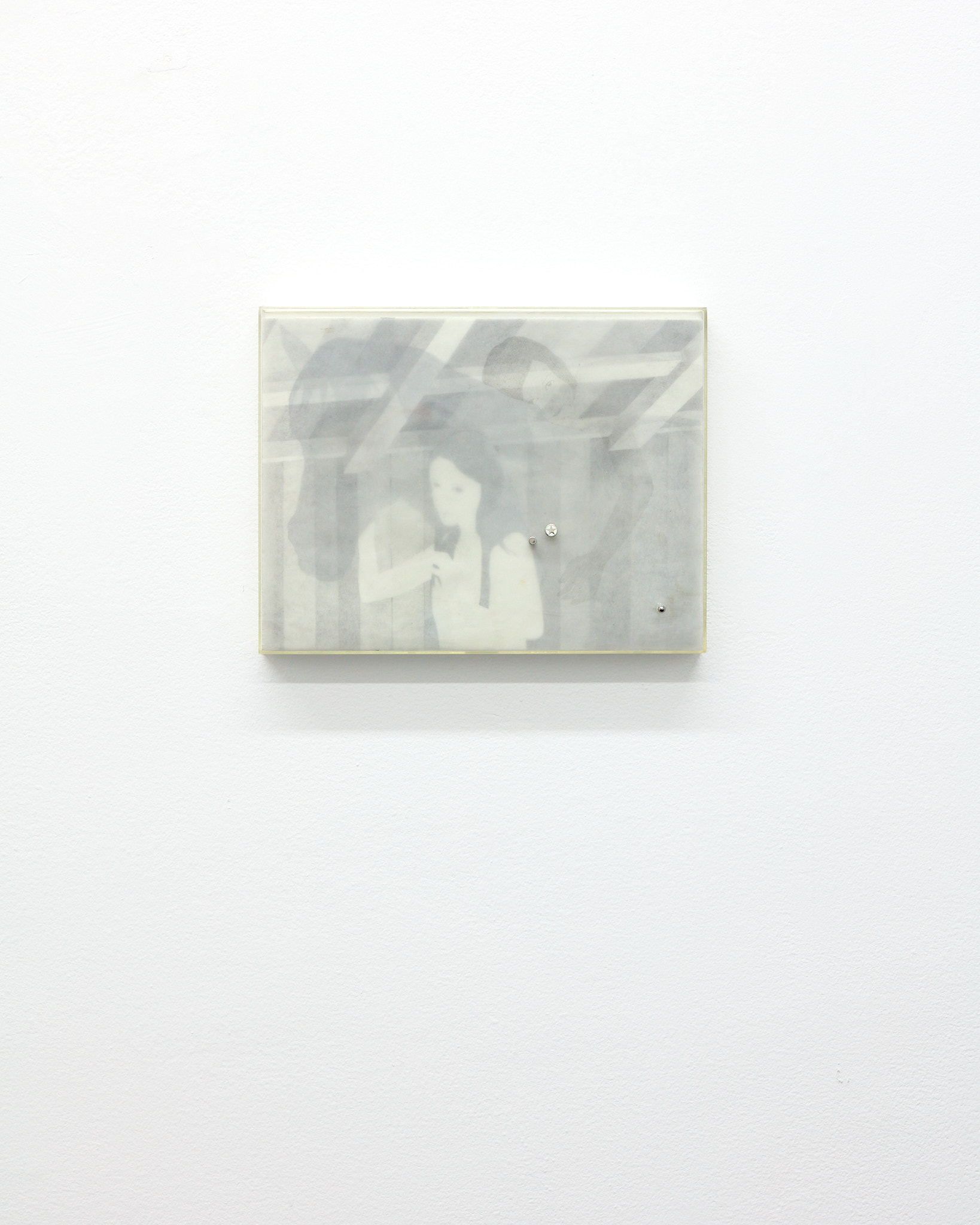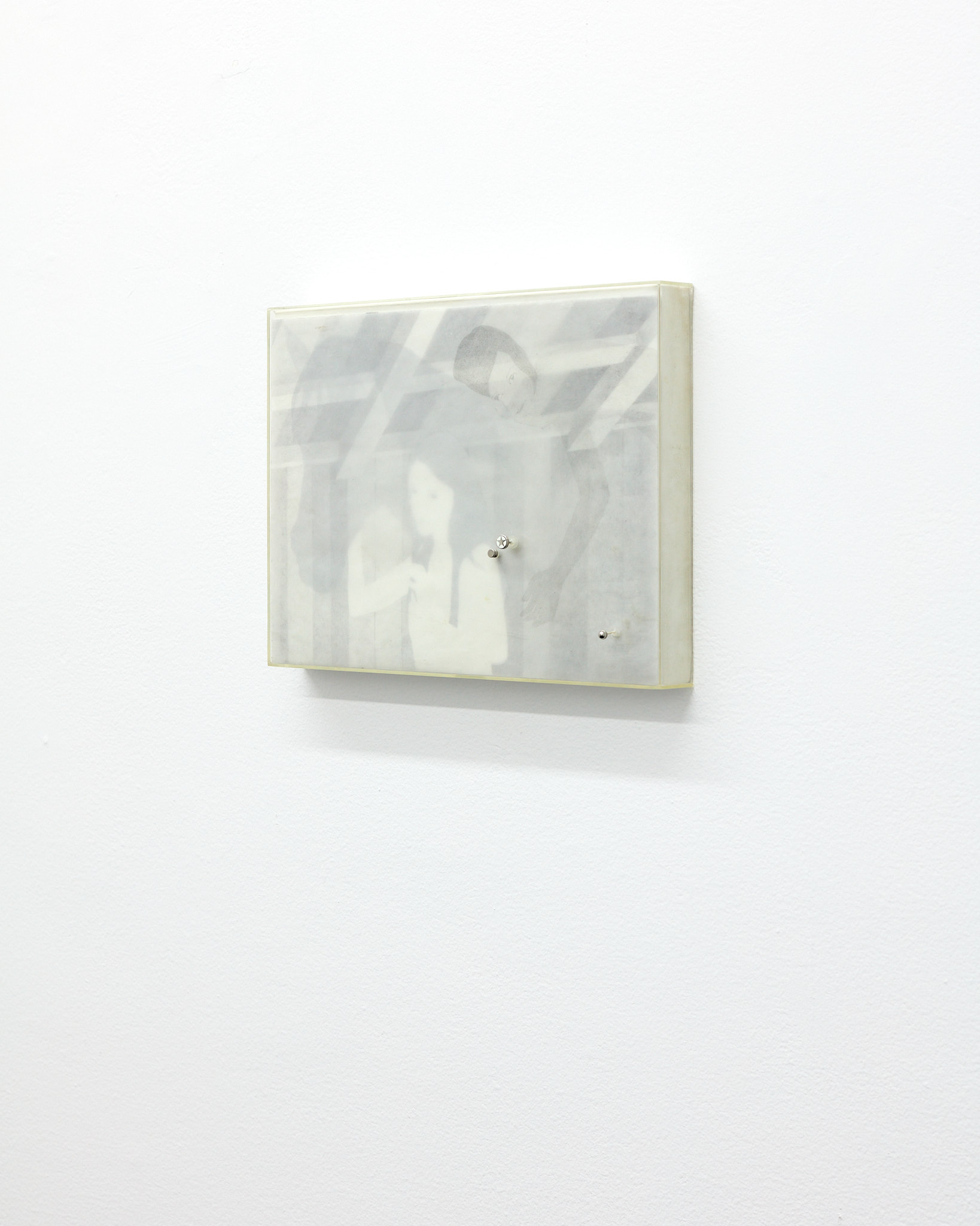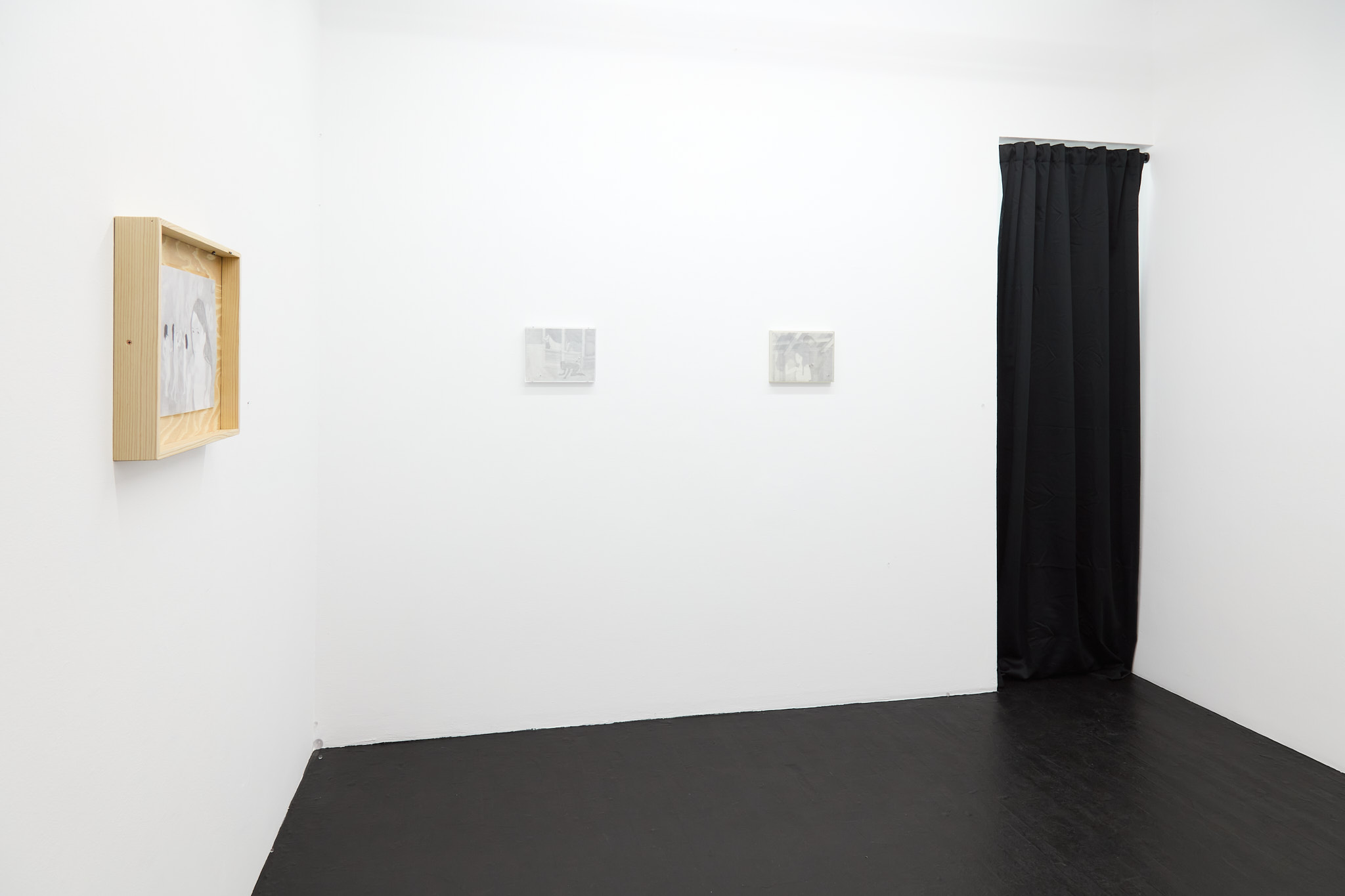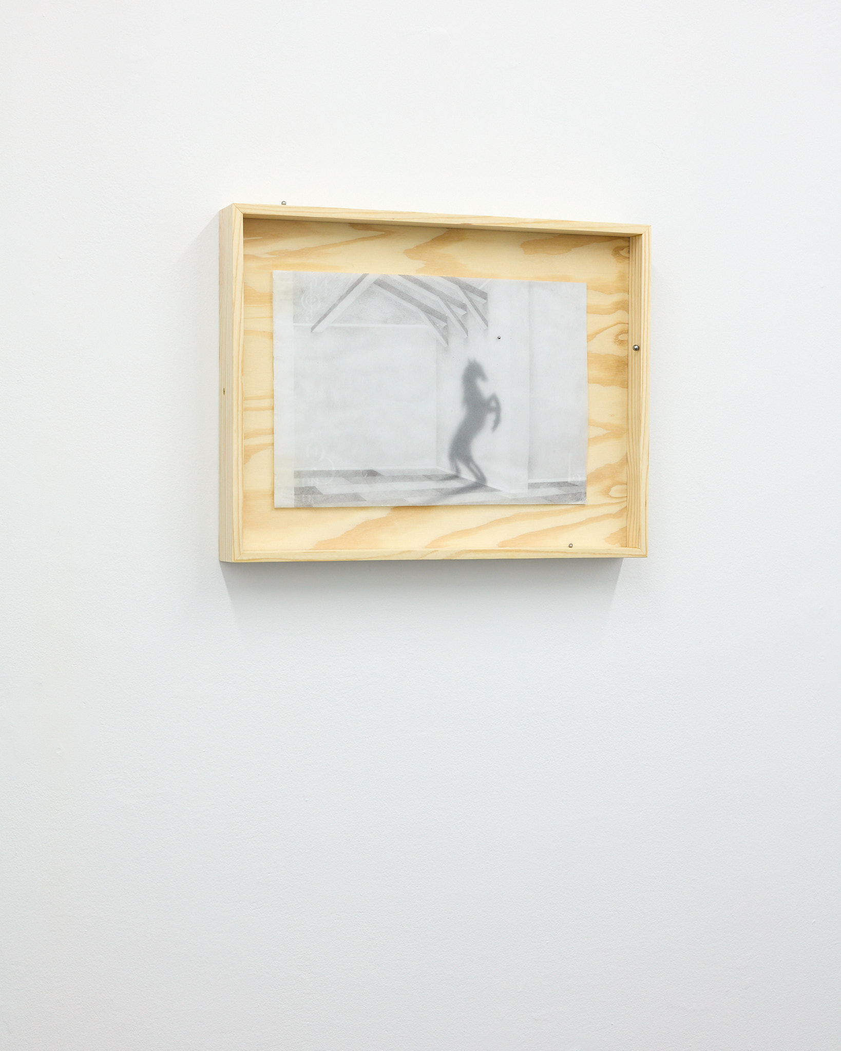 The term ‘mewl,’ a soft, plaintive cry, captures the quiet vulnerability and introspective nature that permeates Hawksley's work. Her graphite drawings depict figures in contemplative states, their interactions with horses or mirrors evoking a symbiotic exchange with their surroundings. These motifs epitomize the lasting navigation between internal desires and external expectations. The stacked substrates making up each drawing introduce a dynamic quality, allowing a fluid interplay of forms and dialogue within the composition, emphasizing the artist’s engagement with form and the inherent flexibility of the medium.